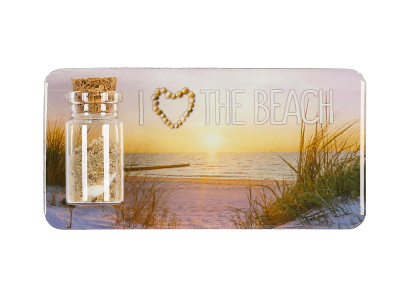 Magneet met flesje I love the beach